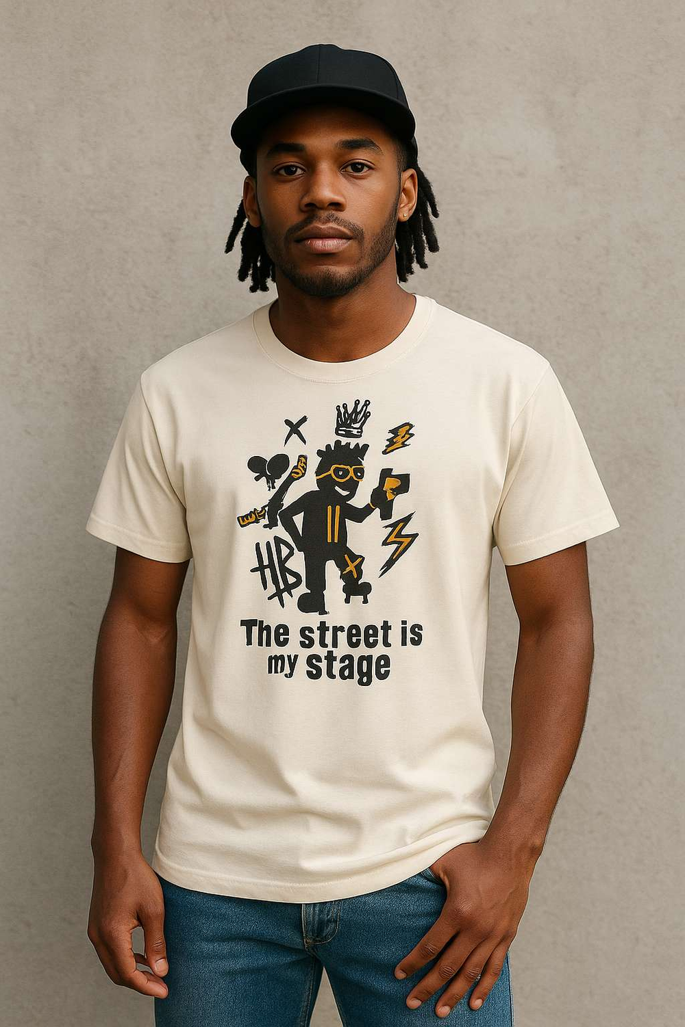 Elevate your urban style with "White - The Street is My Stage," a sleek and versatile streetwear...